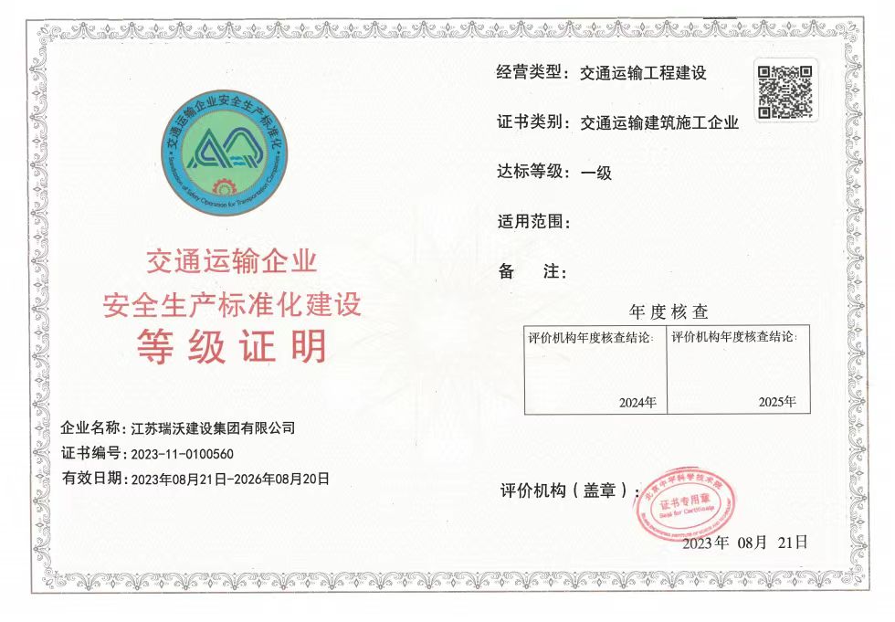 江蘇瑞沃建設(shè)集團(tuán)有限公司成立于2007年,是一家以市政、交通工程建設(shè)為主導(dǎo),集房屋建筑、交通安全設(shè)施、城市道路照明工程、電力工程、隧道工程、航道工程及投融資為一體的綜合性企業(yè)。企業(yè)注冊資本60000萬元,現(xiàn)有各類技術(shù)人員580人,其中中、高級以上人員498人,注冊類人員268人,一、二級建造師166人。公司榮獲“江蘇省建筑業(yè)優(yōu)秀企業(yè)”、“江蘇省五一勞動獎狀”,連續(xù)多年被評為“揚州市先進(jìn)企業(yè)”、“江蘇省建筑業(yè)百強企業(yè)”,連續(xù)八年蟬聯(lián)百強企業(yè)基礎(chǔ)設(shè)施類第一名。